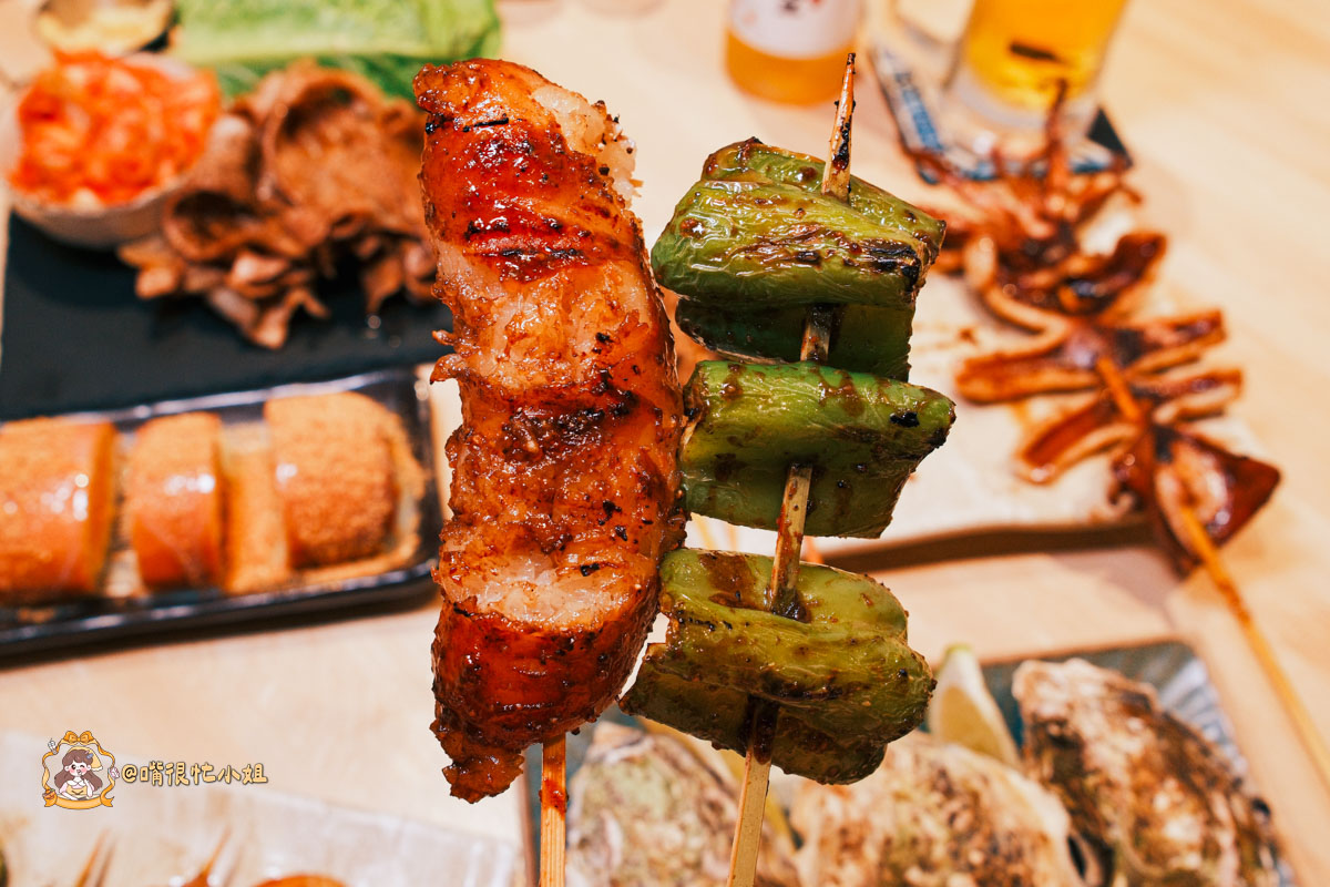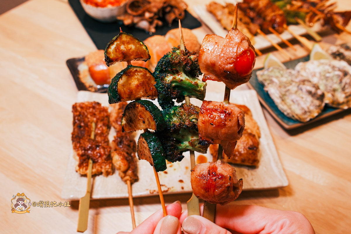 豬五花烤得焦香油亮,裡頭包著多汁的番茄,番茄的酸甜剛好中和五花的油香,是清爽不膩口的一串;花椰菜吸附醬汁後,每一口都能感受到焦香與醬香,蔬菜控會愛死這一串;櫛瓜則是烤得多汁、邊緣微焦,咬下去水分爆開,爽口又清甜,是肉串的完美搭配。