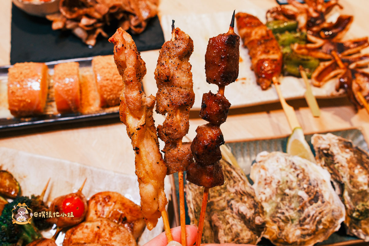 整體吃下來,魷魚Q彈、雞皮酥香、豬五花油亮,每一串都有讓人「想配酒」的那種香氣。真的會一串接一串完全停不下來;讓我最意外的是蔬菜串也很好吃,櫛瓜跟花椰菜刷上神醬後變得超入味,甚至比某些肉串還讓人驚艷。而甜心銀絲卷就是那種「吃完鹹的必收尾」的小確幸,外酥內軟、甜香剛好不膩,完美收尾。