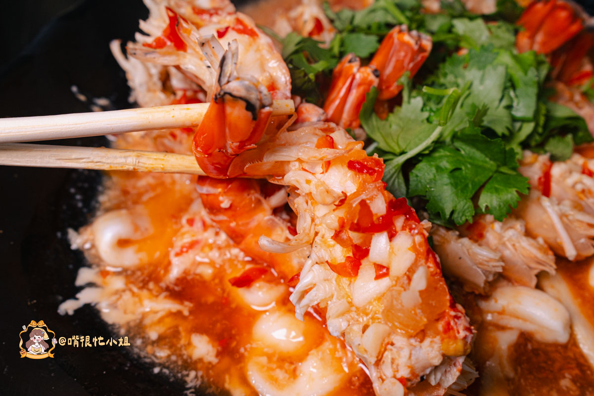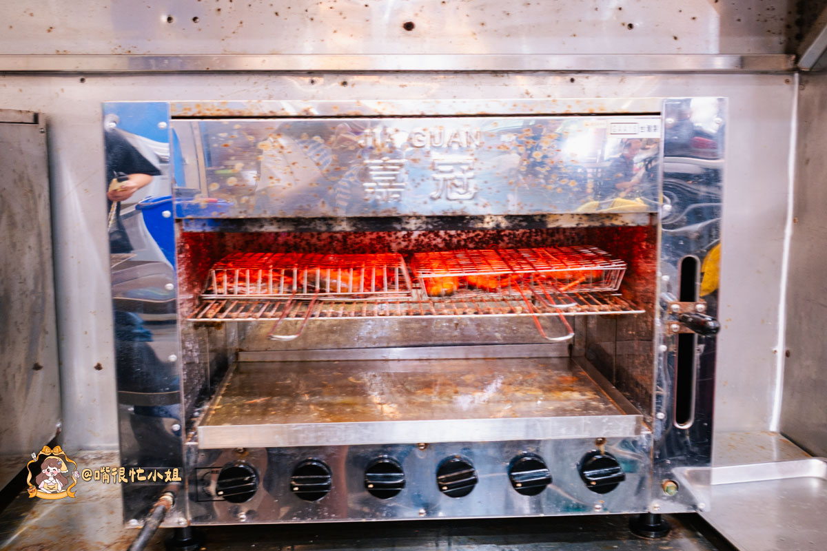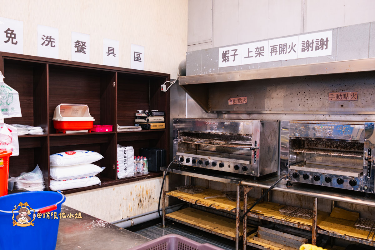 這裡的烤爐就是你在老派釣蝦場會看到的那種鋼製大烤箱,外觀滿滿歲月感,但功能超強。烤爐一打開,裡面滿是紅通通的電熱管,溫度高到隔著玻璃都能感覺到熱。把蝦子平放在烤網上,再灑上一大把粗鹽,推進烤箱後會看到蝦殼慢慢從深橘變亮、變油亮,頭部那邊還會冒出自然的蝦油,咬下去那口香氣完全不同於水煮蝦。