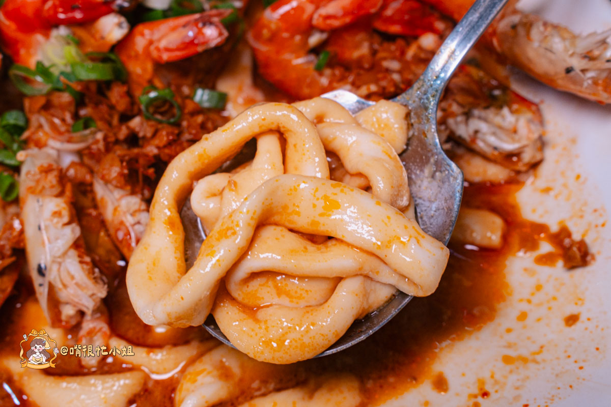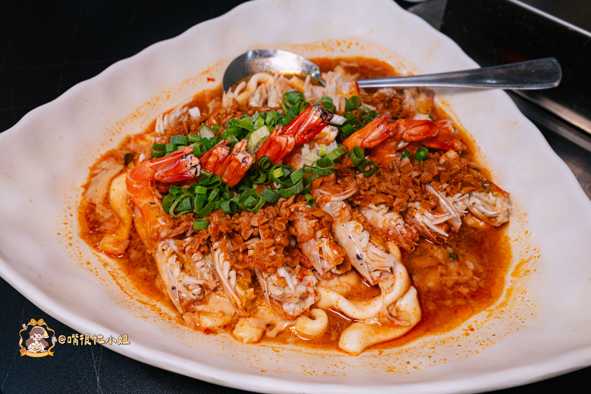 蒜味非常明顯,但不是那種嗆辣,而是濃郁、滑順、的蒜香。粄條吸了蒜泥醬後變得更濃稠,吃起來有層次感。蝦肉依舊維持鮮甜與彈性,蒜香把海鮮的味道提升得更乾淨,整體是比較溫潤、鹹香的路線。