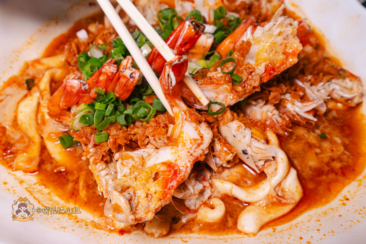 酸、辣、香融合得很自然。粄條吸飽醬汁,滑滑的、帶一點彈性,每一口都很有味道。蝦肉給得大方,咬下去有彈性,吃得到蝦肉自然的甜味。泰式酸辣醬帶點微微柑橘香,吃到後面也不覺得膩。