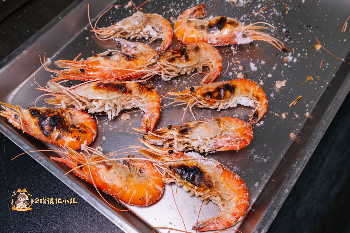烤好的那一盤上桌時,整個空氣都是香味,蝦殼烤到脆脆的,指甲輕輕一掰就能剝開。蝦肉帶點嚼勁,咬到靠近頭的地方會有濃濃蝦膏味道,鹽香把鮮味整個拉出來,不用沾醬就很好吃。