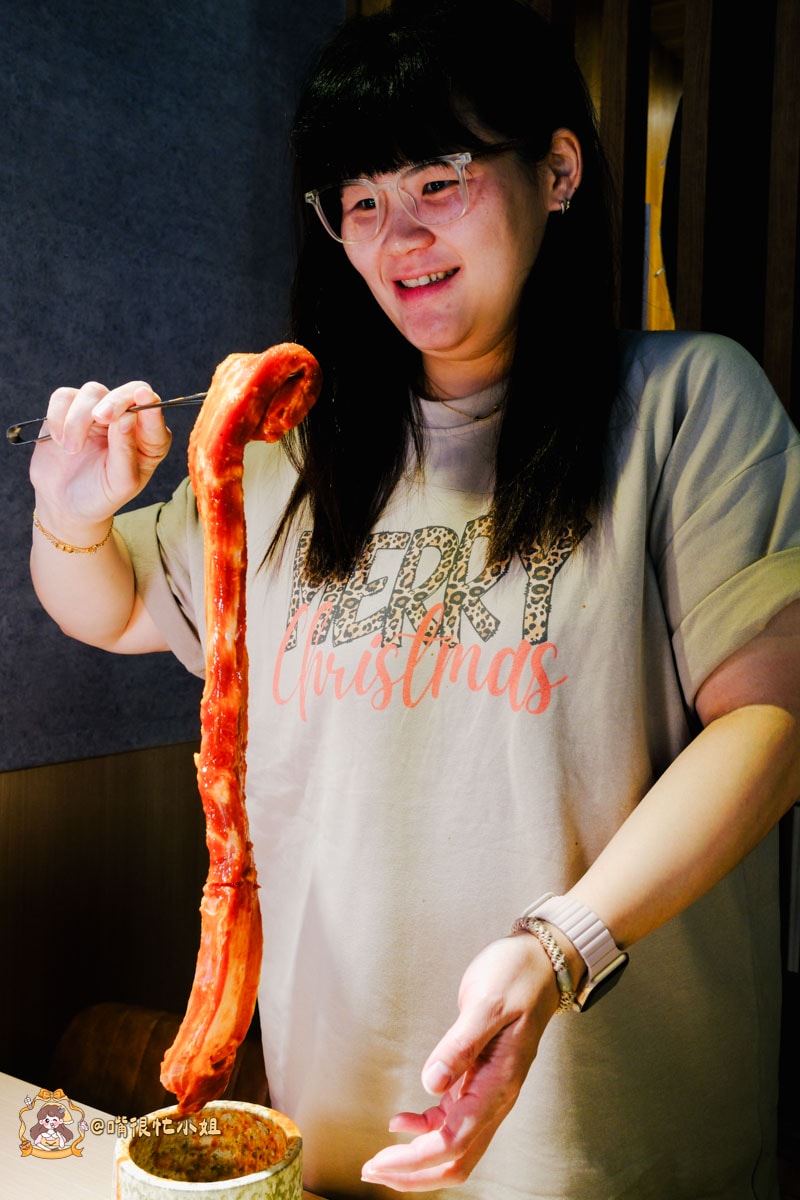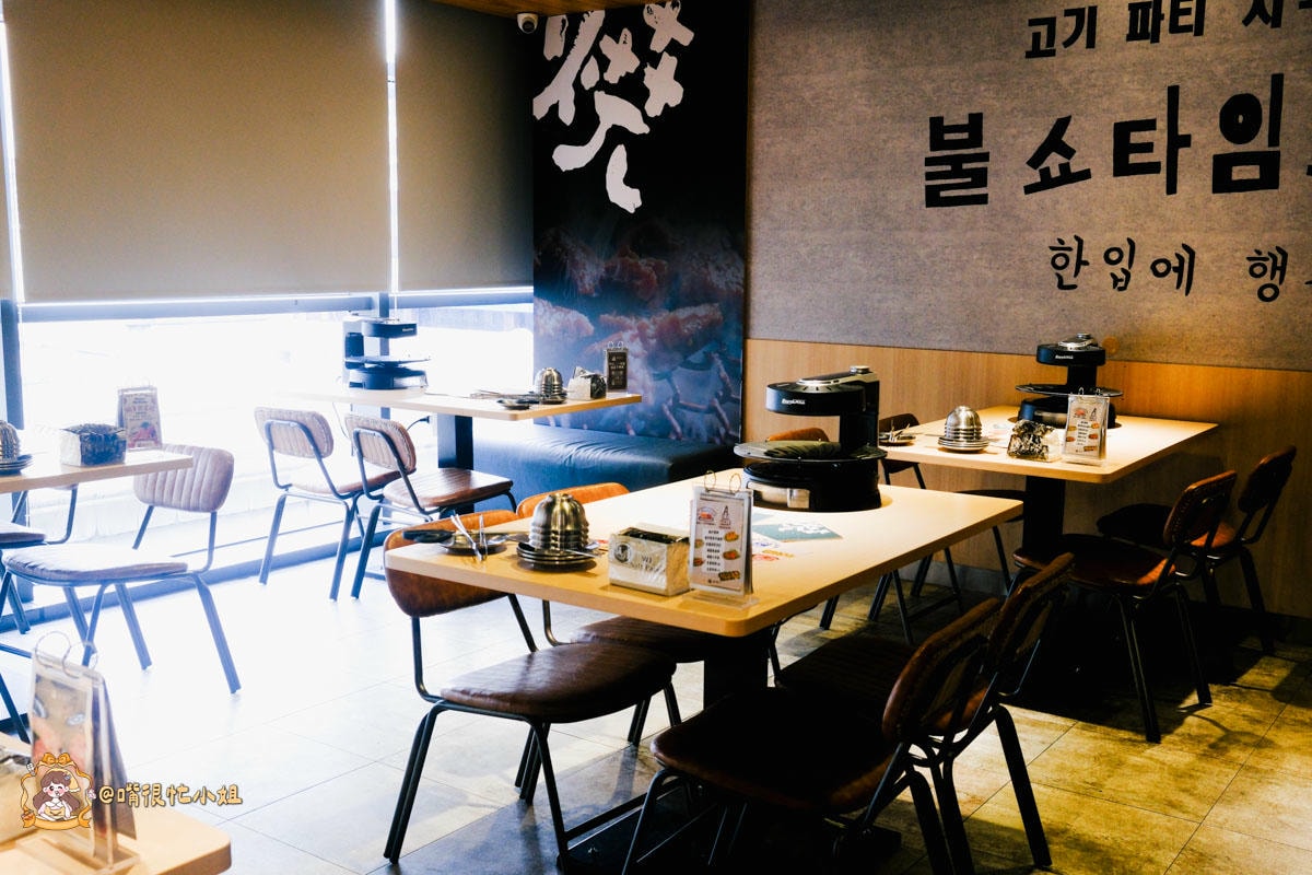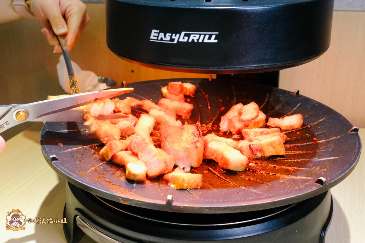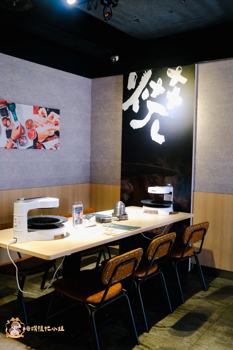 走進店裡,整體是木質調設計,搭配溫暖燈光,氛圍很舒服。桌子之間的距離不會太擠,可以很自在地聊天。最吸睛的就是桌面上的「旋轉烤盤」,肉放上去後會自動轉動,幾乎不用費力顧火候,只要注意翻面就好。加上抽風系統很強,吃完完全沒有油煙味,這點真的很加分。
