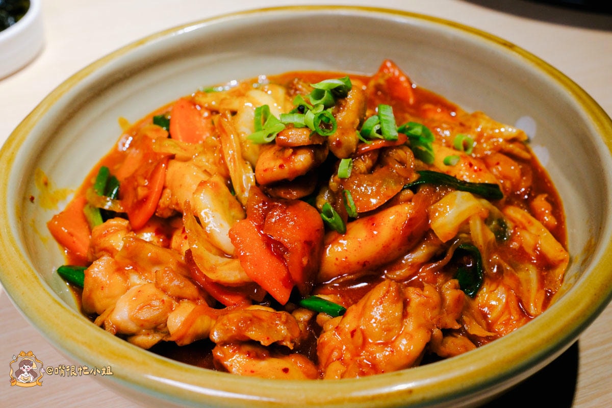 這一道是偏重辣味的經典韓式料理。雞肉被辣醬包覆後入口帶有香、辣、微甜的口感。肉質保有彈性與鮮嫩,不會因為醬料過重而掩蓋雞肉本身的甜味。辣感在後段才稍微展現,不會一下子就衝到舌尖。搭配洋蔥絲、青蔥很有層次感。與烤肉搭餐時,這道可以作為變化口味的好選擇。