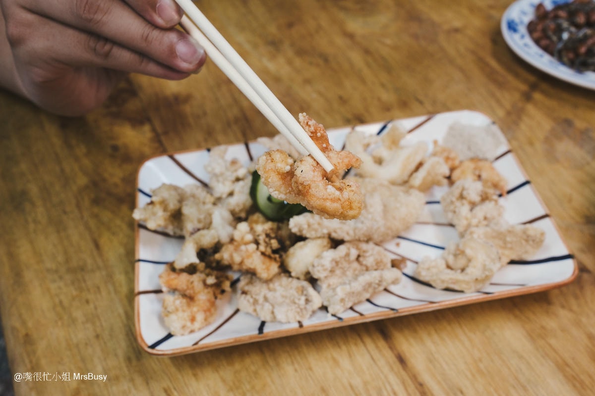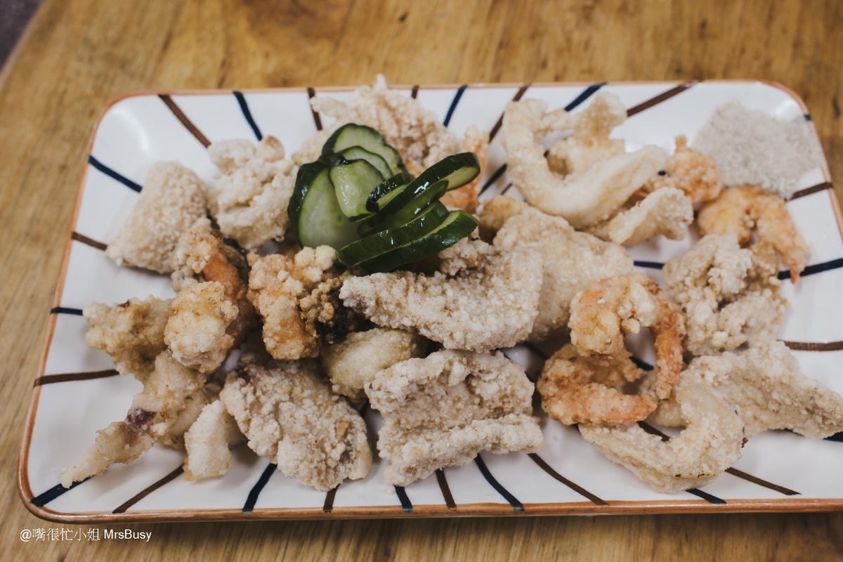 這道炸三鮮絕對是阿崑香菇肉粥的隱藏版人氣王。外層炸得酥脆,內裡保留了海鮮的鮮甜與彈性。蝦仁鮮脆、魚片嫩滑、花枝Q彈;搭配的小黃瓜清爽可口,一口接一口超級”涮嘴”。