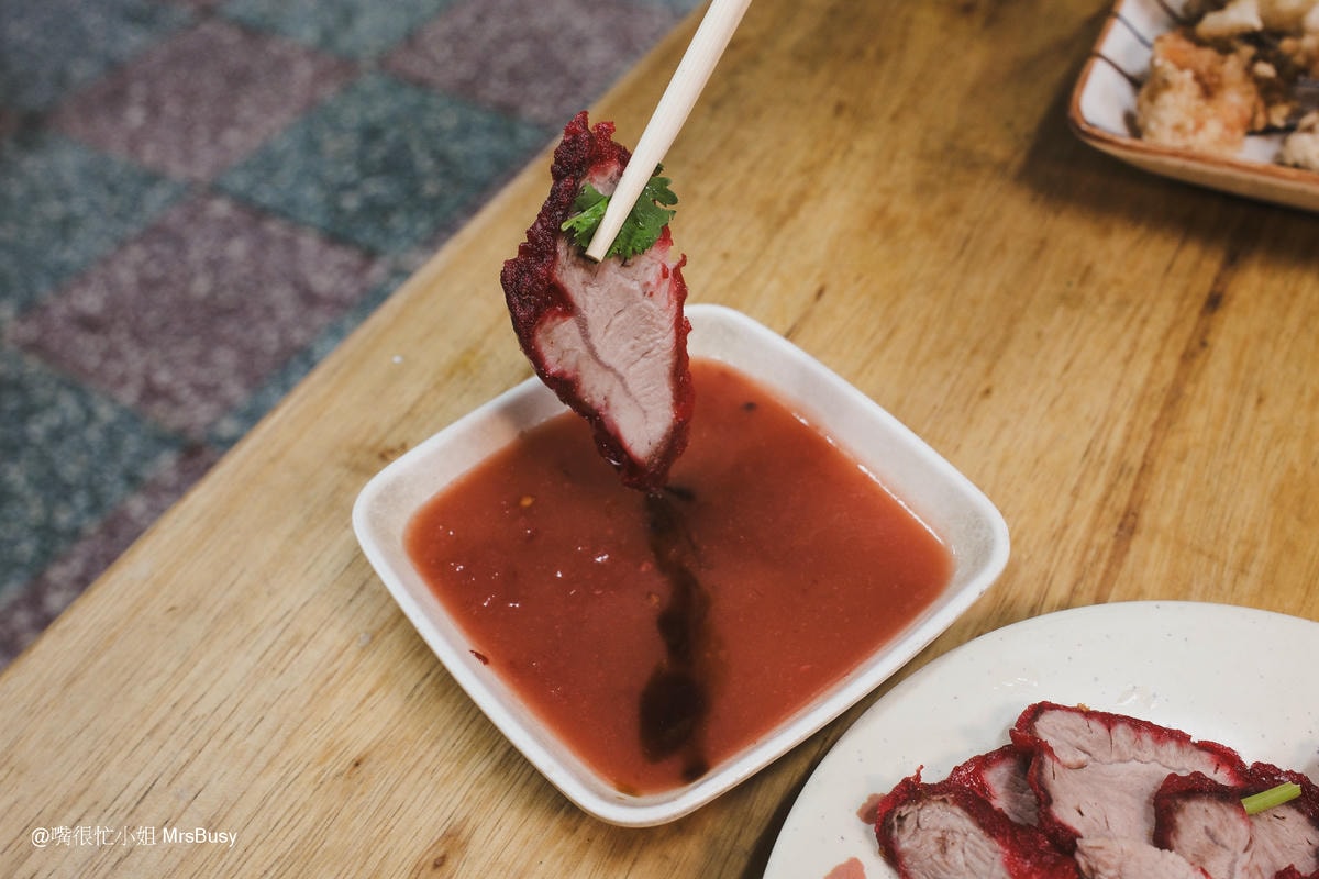裹上紅麴的紅燒肉,色澤鮮亮又迷人;一口咬下,微酥的外層、肉質柔嫩,鹹香的滋味在口中綻放,配上香菇肉粥或單吃都超過癮。