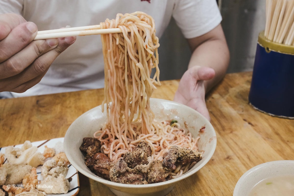 Q彈的黃麵條拌上店家特調的甜辣醬,配上外酥內嫩的雞塊,層次十足。鹹香的滋味和麵條的嚼勁完美融合,吃上一口就停不下來。