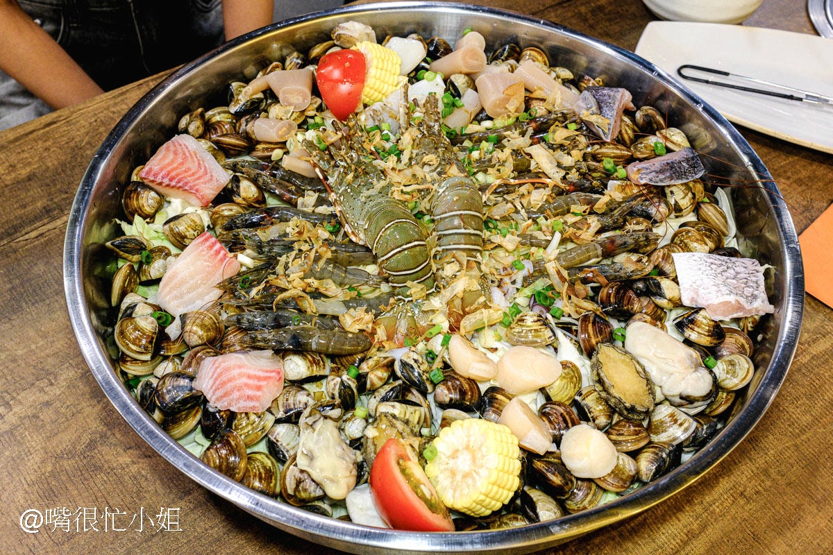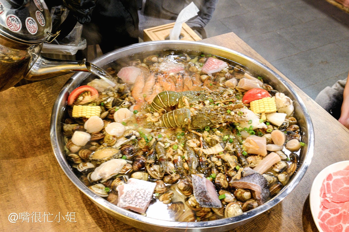 來石憶食鍋,一定要試他們的隱藏版海陸套餐。價位 $1999,份量真的浮誇到炸,裡面有: 龍蝦、生食級干貝、鯛魚、鱸魚、生蠔、花枝、白蝦、蛤蜊、鮑魚…等將近十種海鮮,份量真的浮誇到炸,完全可以 3-4 個人一起分享。