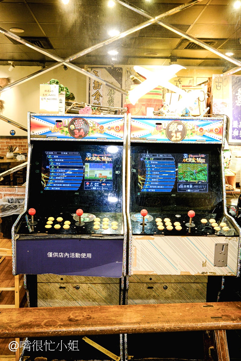 最酷的是,牆邊擺了兩台復古電玩機台,而且遊戲種類超多,超過上百種;都是以前夜市或遊樂場會看到的那種。等餐的空檔都可以看到玩得很嗨的小朋友以及忍不住回味童年的大人,用餐氛圍很輕鬆。