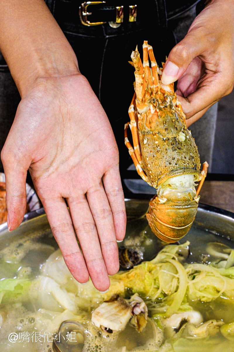 跟手臂一樣大隻龍蝦的會有專人協助剝蝦;肉質緊實彈牙,完全吃得出新鮮感。