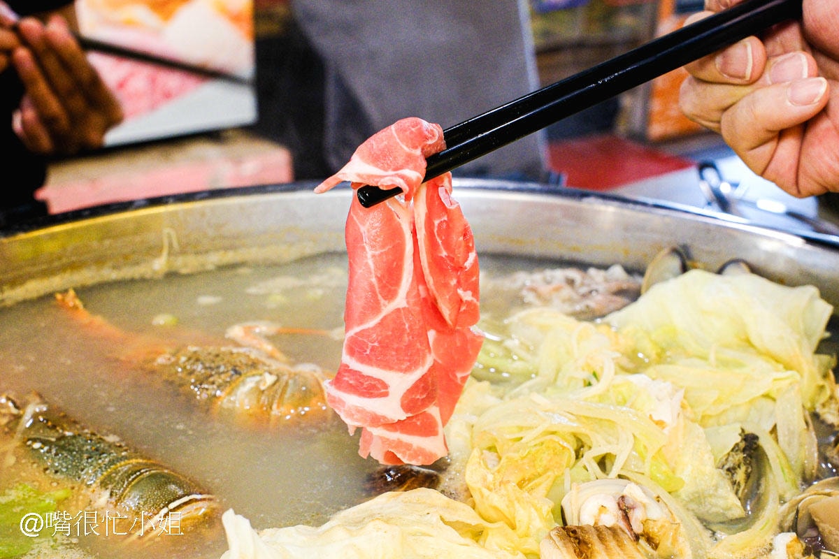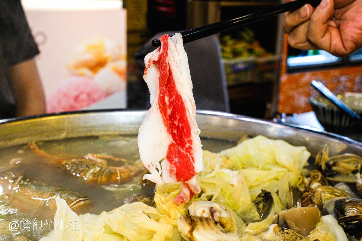 雪花牛涮個幾秒就能吃到軟嫩香氣;豬肉則厚薄適中,肉質緊實,吸附湯頭後完全不乾柴。而且翻開海鮮的下層,還藏著滿滿的蔬菜,等於海鮮+肉+蔬菜一次到位,超值感滿分!