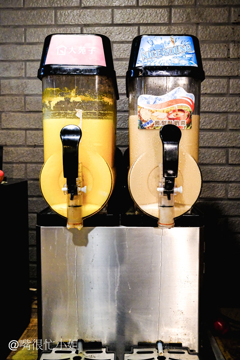 這裡竟然有大苑子冰沙!還是芒果口味!口感酸甜,超解膩。旁邊還有古早味紅茶、咖啡、汽水可以選,選擇多到會有選擇障礙。