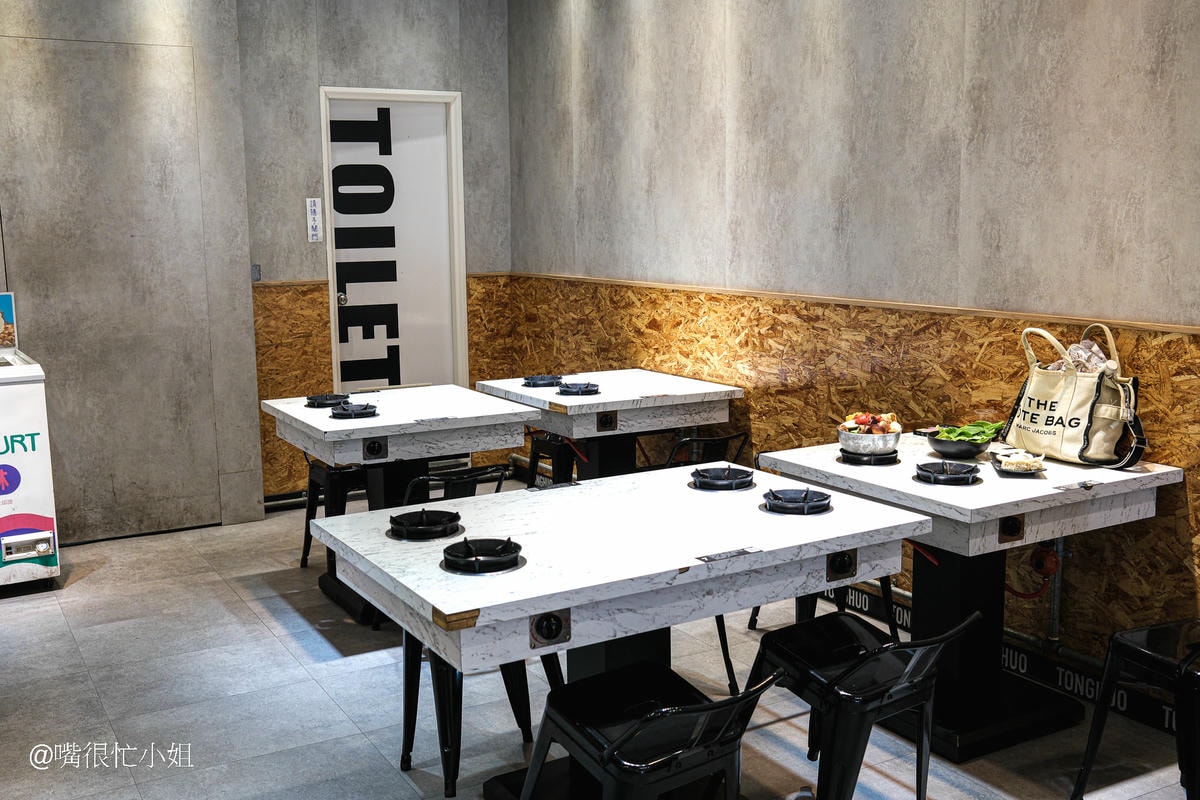 同伙小火鍋在板橋有兩間店,漢生西路上的這家店雖然招牌不大,但一進門,內用空間比想像中寬敞,,採光明亮,整體環境乾淨;每桌桌面以大理石紋設計為主,座位之間間隔不擁擠;大多是2-4人座為主。