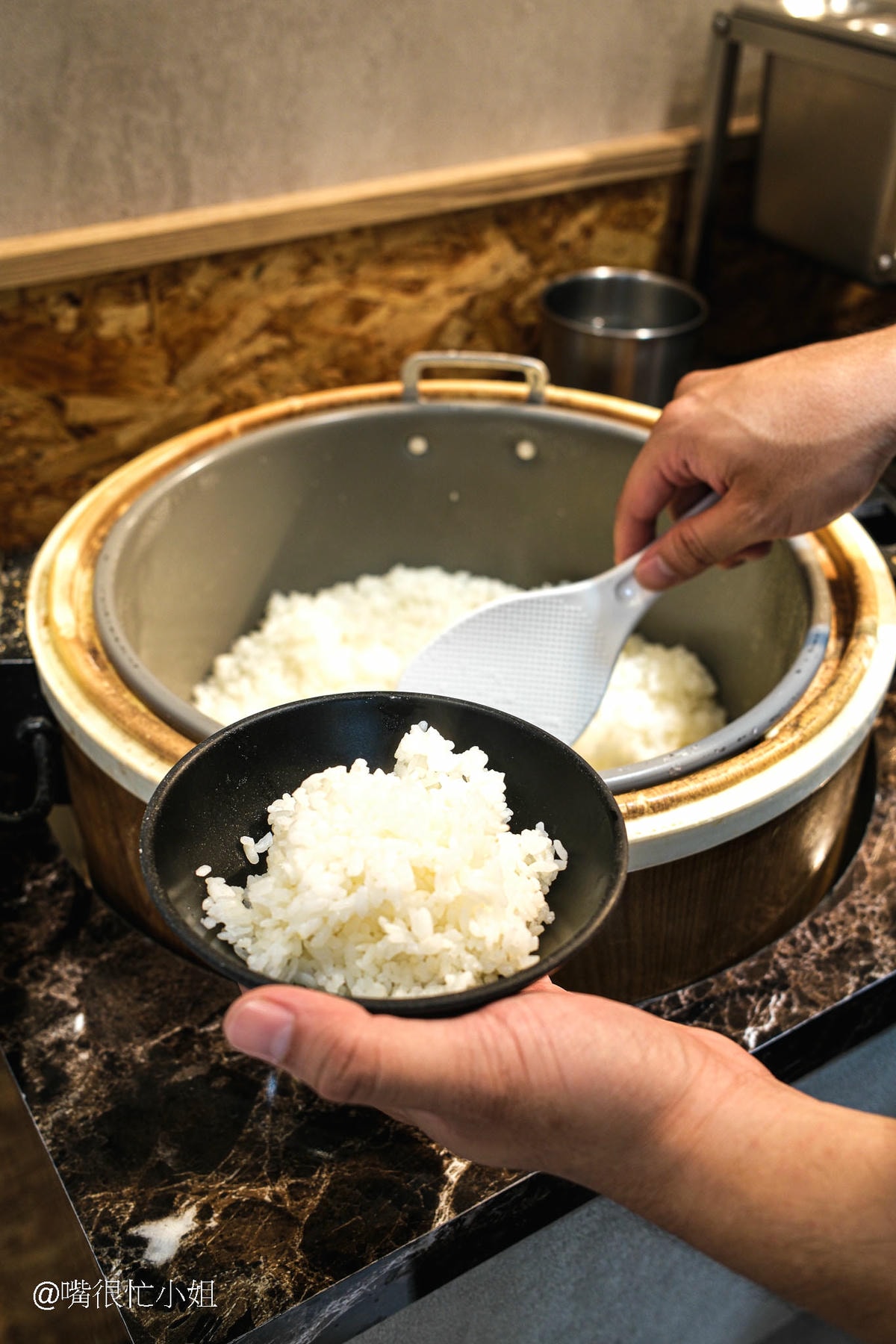 白飯內用是無限量吃到飽;另外想稱讚醬料區,大部分的火鍋店都是用無蓋的不鏽鋼桶裝醬料,但是同伙小火鍋-板橋漢生西店這邊的是加蓋的,乾淨又衛生,超加分!