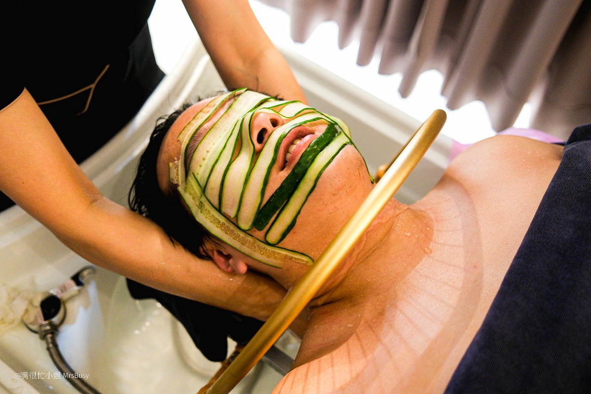 臉部 SPA 包含卸妝、清潔、敷面膜與,原本以為只是普通的敷面膜,沒想到敷的竟然是新鮮現刨的小黃瓜!冰冰涼涼的很舒服,而且小黃瓜的味道很好聞XD
