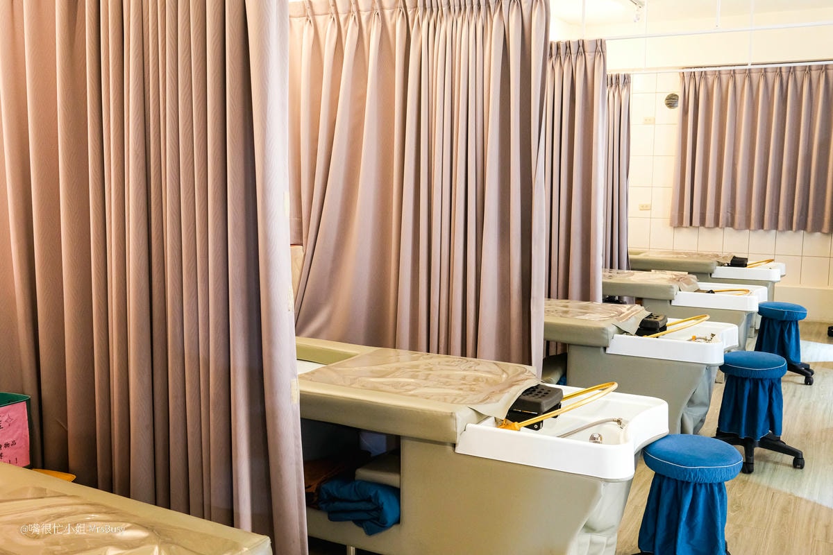 每一個洗髮床區域都有獨立布簾來做隔間,讓人在享受越式洗髮過程中,能夠安心放鬆、不被打擾;,布簾材質柔軟厚實,不僅有效隔絕視線,也增添療癒感,從這個小細節就能感受到店家對每位顧客的重視與貼心。